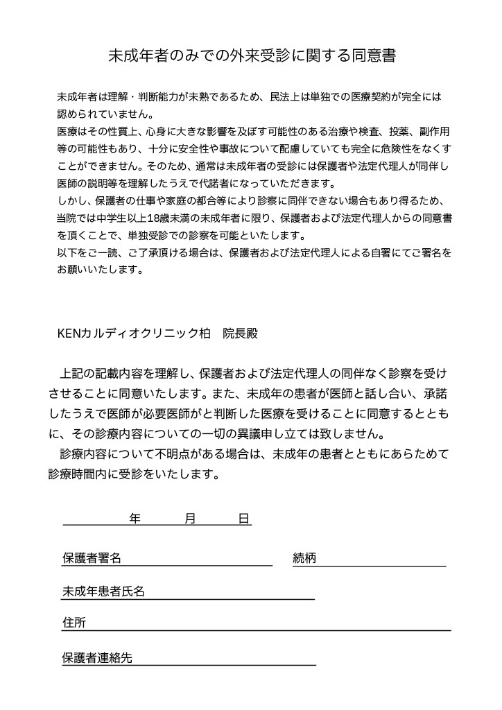 18歳未満のお子様の単独受診について